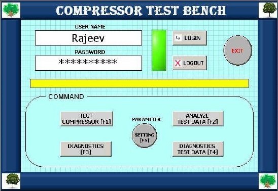 This Test Bench is used to test the Compressors, which has different working principle. There are different types of test which an operator can perform as mentioned below:-